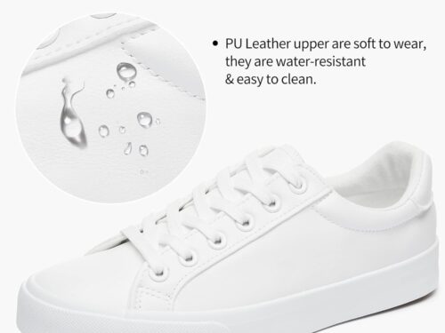Womens White Tennis Shoes PU Leather Sneakers Casual Walking Shoes for Women