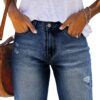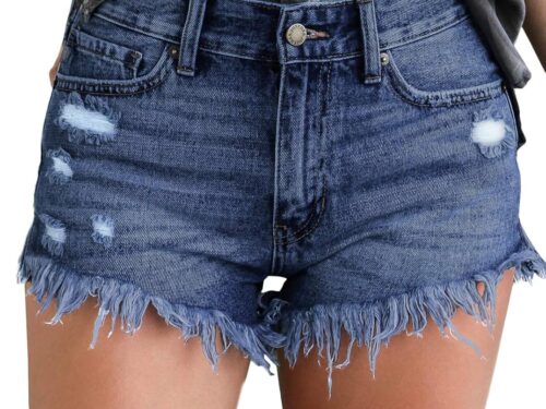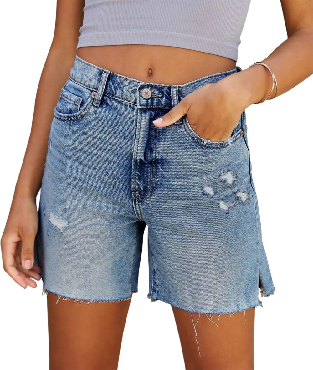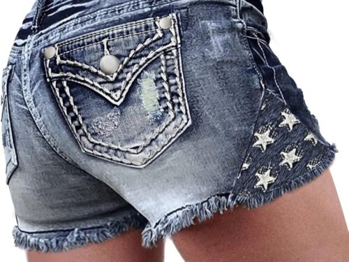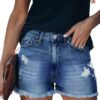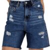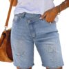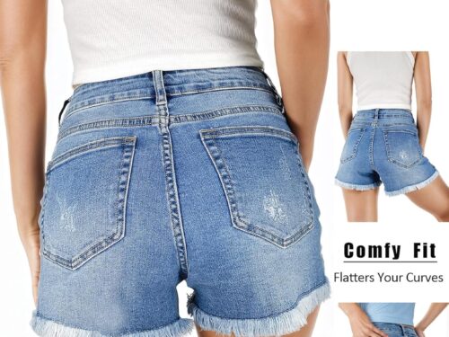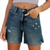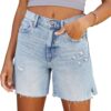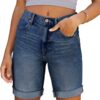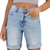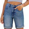 Womens Bermuda Jean Shorts Stretchy Mid Waisted Denim Shorts with Pockets
